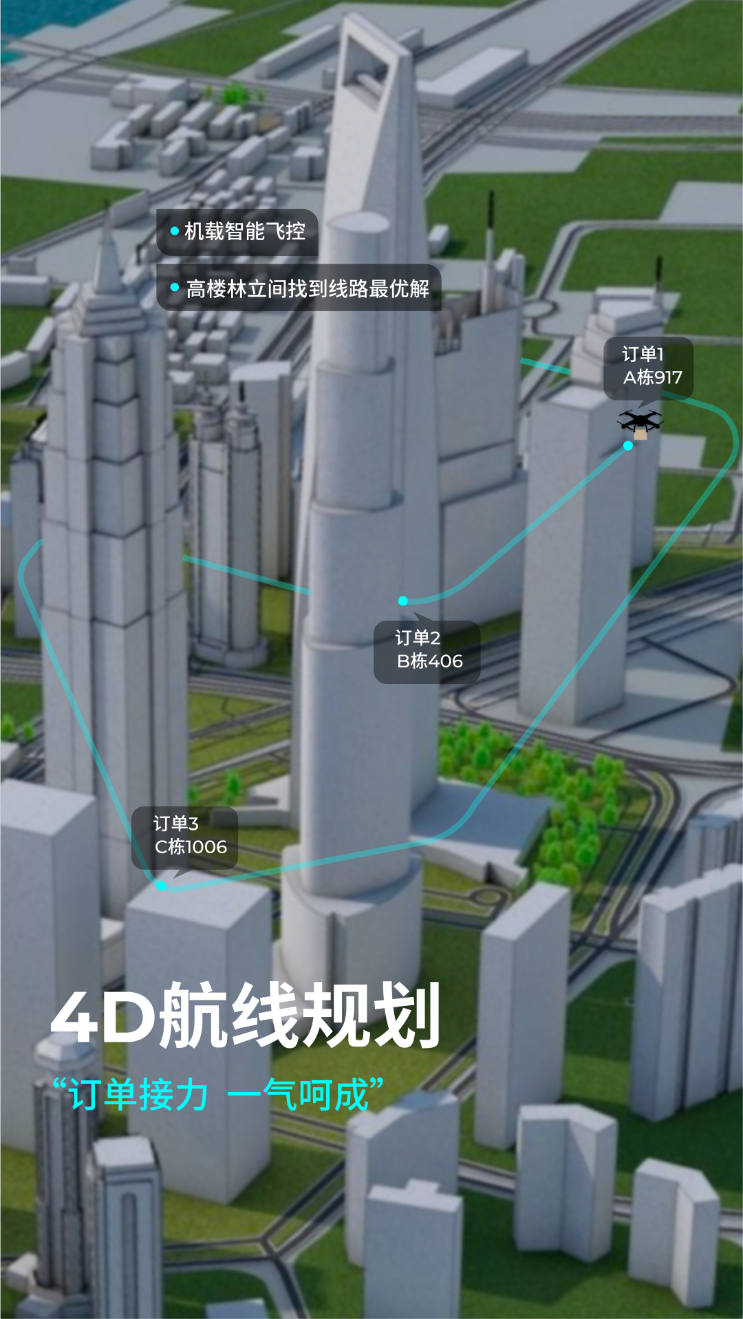 除了针对单一目标或者目标群的巡检作业,物流配送是无人机在城市中另一大应用场景。