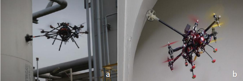 关于清洗的研究主要集中在一些较为光滑的表面的清洗,比如墙面、玻璃和光伏电池,目前已经有国外创业公司(如西班牙的CleanDrone公司)从事空中清洗作业机器人方面的研究。