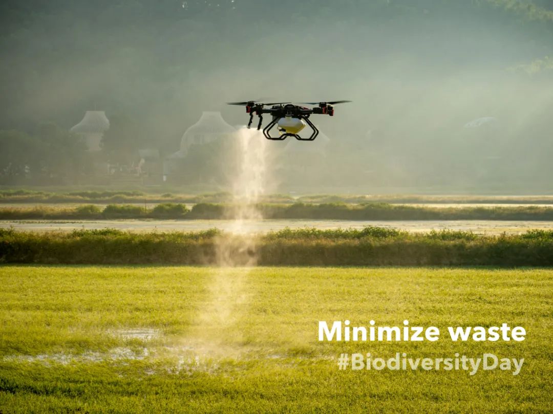 地球上的每一滴水都十分珍贵。极飞农业无人机能够进行高精度喷洒,在农业中节约用水,减少农药的使用,降低土壤污染。(中国, 2021 年)22 项生物多样性行动之 18 :支持有利于生物多样性的企业
