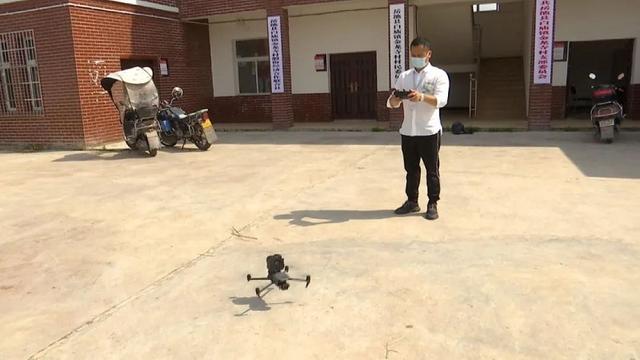 在白庙镇金龙寺村党群服务活动中心,该镇工作人员正在架设一台无人机。随着操作平台的按钮启动,无人机腾空而起,机载喇叭的声音传遍四面八方。