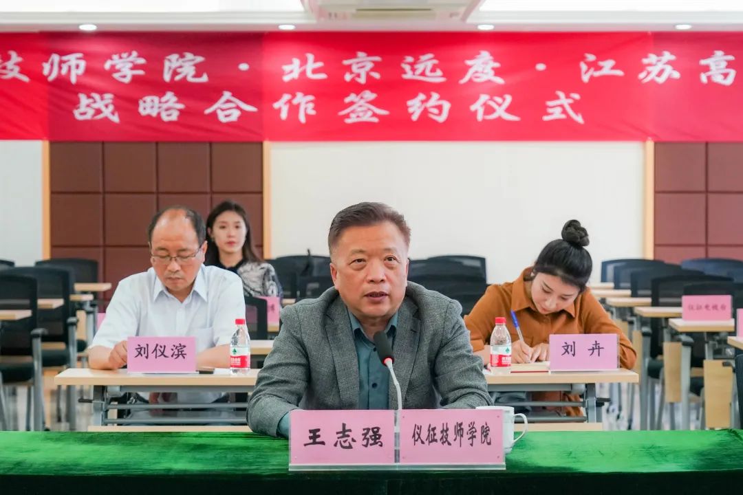 仪征技师学院王志强院长在致辞中介绍了江苏省强省战略的人才需求现状及仪征市产业特色。对此次校企合作、产教融合战略协议签约后的落实推动工作提出三点希望。一是校企双方加强交流,不断优化无人机应用型人才培养方案;二是开展校企共育人才模式,实现学生高质量就业;三是共同打造华东区域具备重要影响力的“无人机+”应用型高技能人才培训基地,为建设品牌专业持续发力。