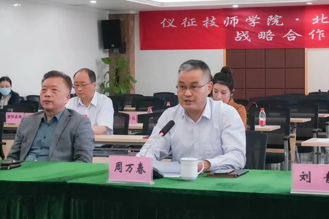 仪式上,仪征技师学院周万春副院长首先从“校企合作、中外合作、东西合作、校校合作”四大办学特色介绍了学院基本情况,以及无人机应用及反制专业建设情况。提出衷心希望各优质企业积极参与到学院无人机应用及反制专业的校企合作中来,本着‘资源共享、合作共赢’的原则开创‘校企合作、产教融合’的新局面,将‘无人机+’校企合作模式向更强、更精的目标前进。”
