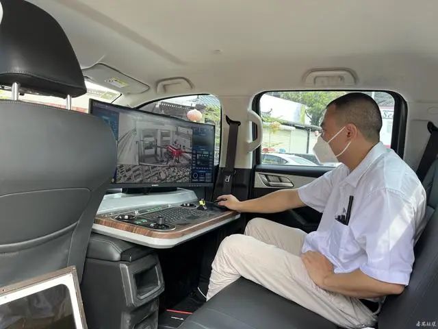 本次出动的无人机是华科尔V1100Pro无人机,并配合移动车载机场进行作业。除广播功能外,该无人机还带有喷洒消毒和物资投递功能。疫情期间,针对特定的防疫情况,操作人员可以在车内对无人机进行远程控制,制定自动化的飞行任务,并通过无人机摄像头进行监控。