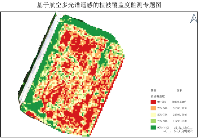 林业属性主要包括森林类型、植被类型与覆盖度、森林面积等基础信息,无人机载多光谱遥感设备可针对林区多样化的植被光谱特征进行针对性分类,表征树种空间分布的同时实现树种面积的分类统计。