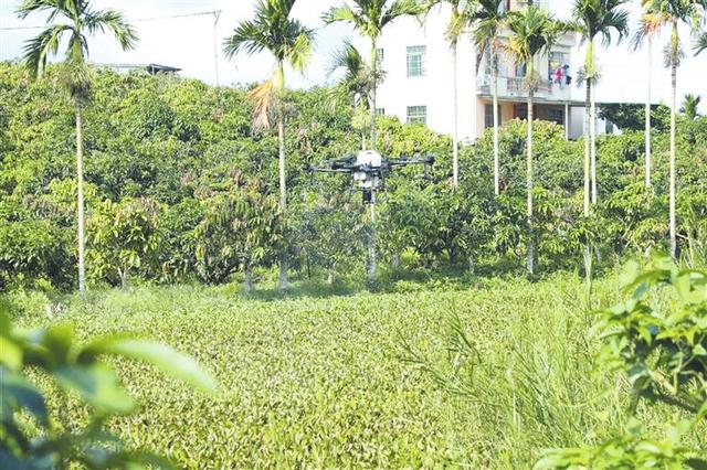 海棠区:“无人机+生物药剂”高效防治水浮莲