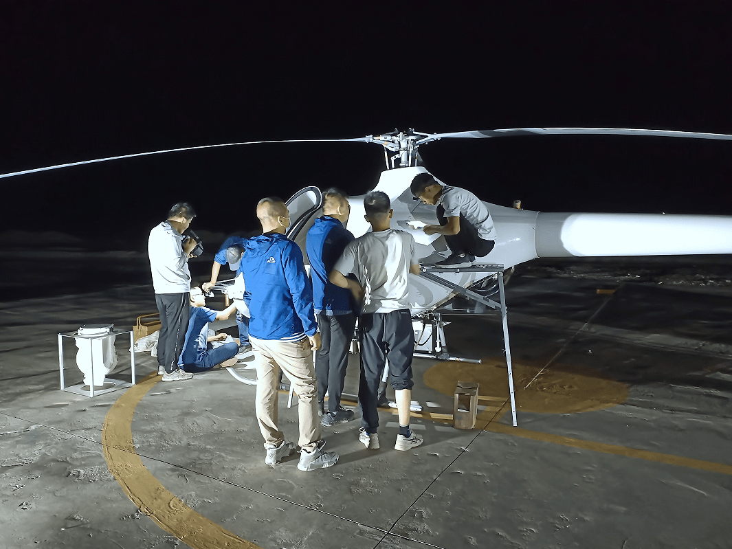 发射首区以沙漠、戈壁、山地为主,地形复杂、对搜索时效要求高、难度大,无人机利用开阔视野与机动能力能够高效进行观测与搜救。为完成保障任务,联合飞机与国内几大军工研究所组成的保障团队提前一个月奔赴发射基地。