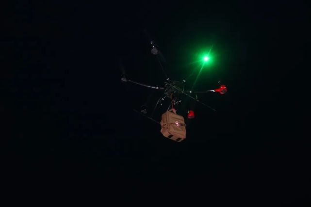 无人机夜间搜救训练,重点检验通信人员夜间无人机飞行搜救,食物、药品的精准投送,并结合驻地任务形势、地形地貌、环境条件等,积极探索无人机保障的新方法、新手段,不断向信息化、实战化拓展转变,提升无人机装备的操作运用。