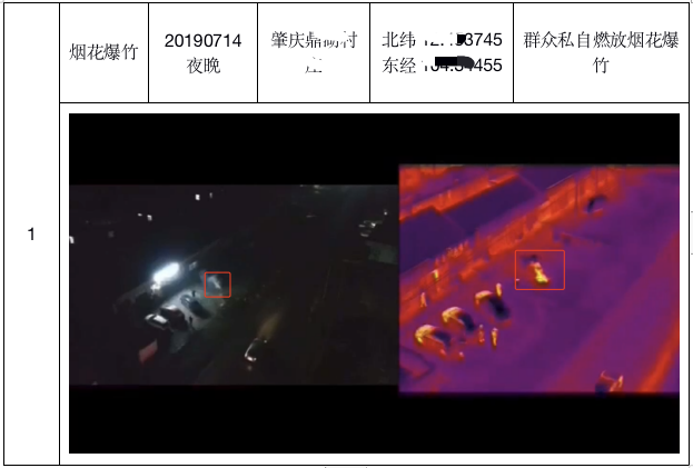 为了快速取证并有效警告、劝阻燃放人员;无人机将搭载喊话器和双光摄像头执行花爆竹燃放巡查服务。利用双光相机的热成像模组,有效识别燃放点。