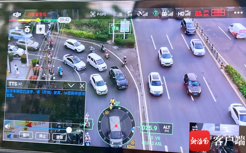 新海南客户端、南海网、南国都市报6月13日消息(记者王燕珍 通讯员 林馨 特约记者 陈世清)“骑着红色电动自行车,车牌号为海口A85**2,穿着黄色上衣的女子,您车上的两名孩子均未佩戴安全头盔,请靠边停车。”6月13日17时许,海口公安交警在博爱北路路段使用无人机巡查晚高峰路况时,对一辆违法的电动自行车主进行喊话纠违。