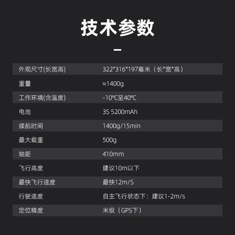 | 无GPS环境下 | 后续添加光流、激光传感器,UWB等的导航支持后方可支持室内无GPS的定点功能 |