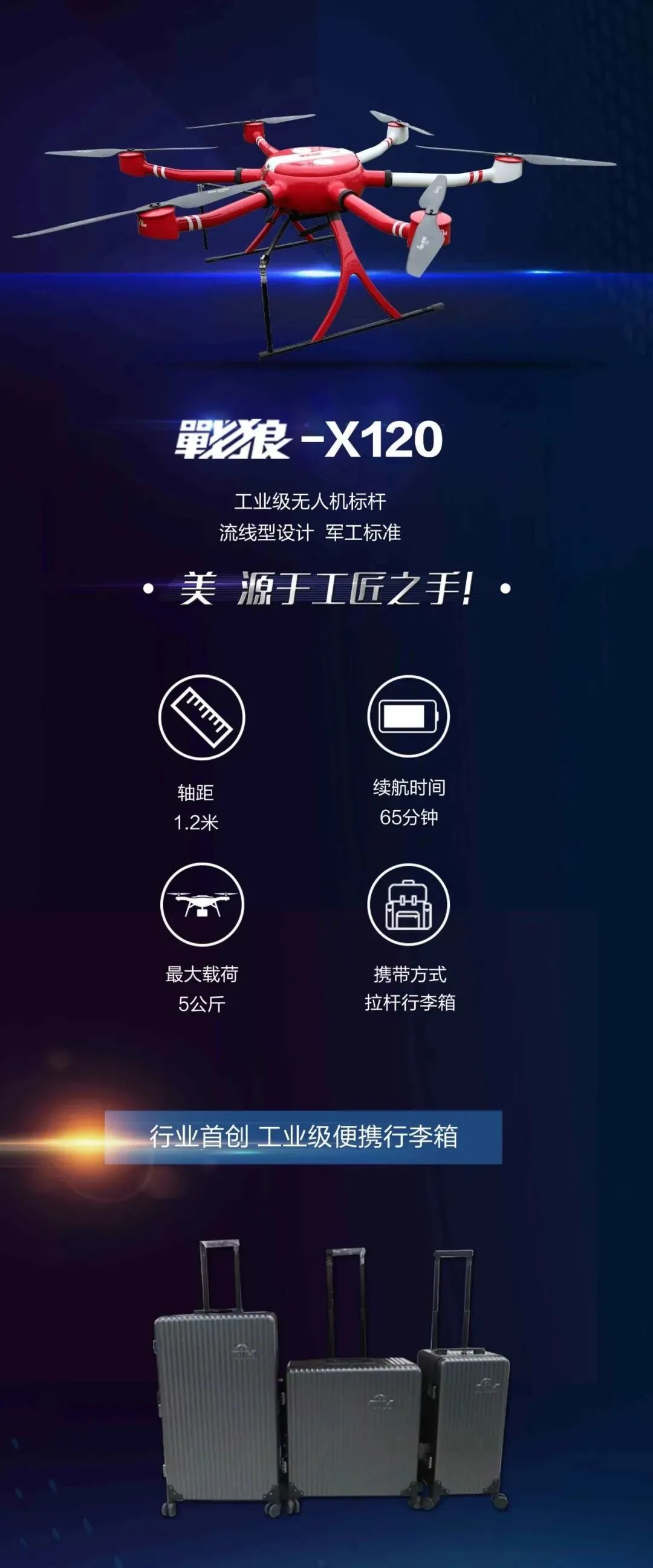 战狼 X120 多旋翼无人机,自推出以来已应用在应急救援、国防军事、公共安全等多个领域,提供了成熟的行业解决方案。随着升级版战狼X120、X150工业无人机的发布,更长的续航时间,更强悍的载重能力,更智能的任务飞行,更强大的任务载荷,以及在七级大风、超大暴雨、低温零下40℃、等恶劣环境中的优秀作业能力,再一次重新树立工业无人机新标杆,大大提高各应用场景的安全性与高效性。
