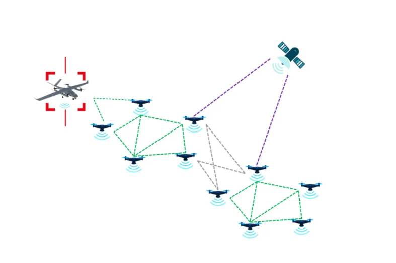 通信网络是无人机之间要通过数据链来共享信息,达到实时传递数据的效果。而这种共享信息,那可不是我们玩游戏“团战”时,队友之间简单的语言交流那么简单,而是建立一个庞大的数据链,实时共享各种信息,包括地形、风速、目标位置等等。在实战中,哪怕你只被一架无人机盯上,那么也就相当于被整个无人机群盯上。