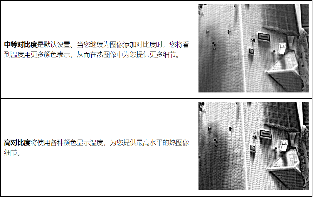 新的热成像对比度设置