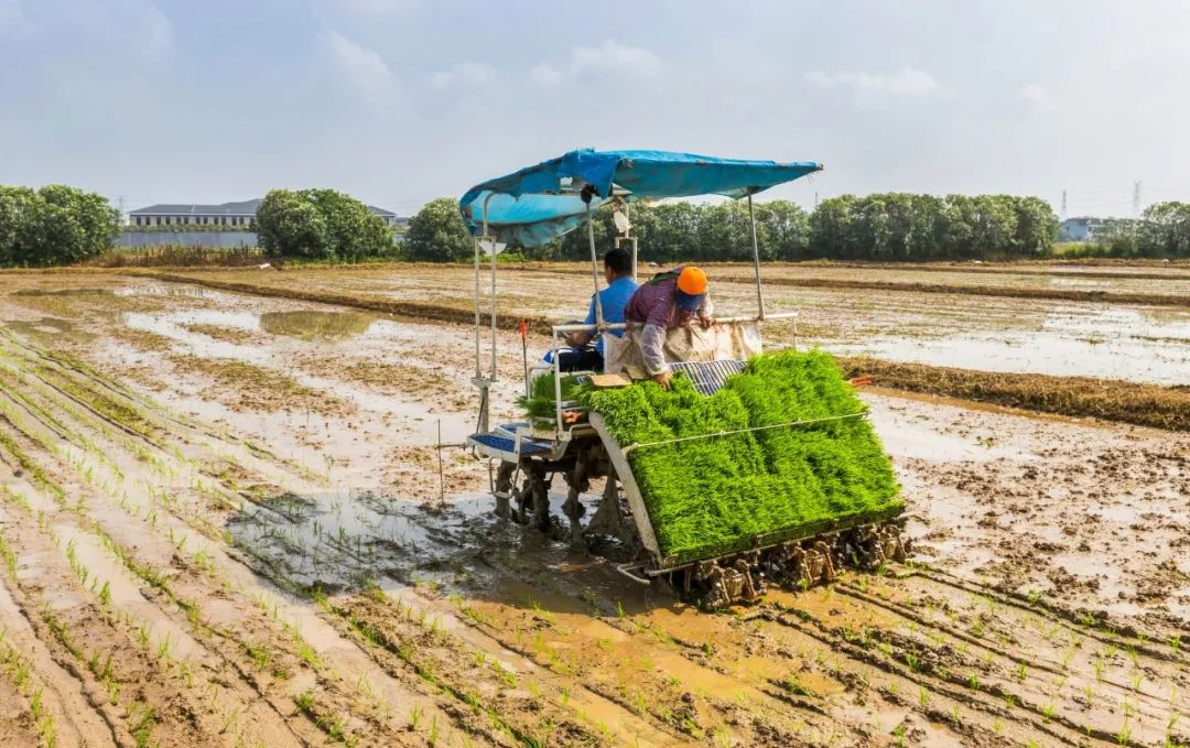 大棚里的秧苗长到 3 - 4 叶就需要送到田里插秧了。插秧流程更为繁复,太多环节需要人力,以机插秧的作业方式为例:
