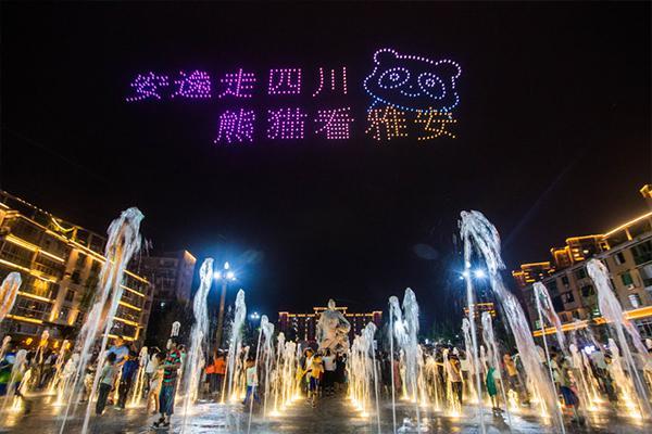 22日夜幕降临时,名山区吴理真广场音乐响起,600架无人机在空中组成“安逸走四川 熊猫看雅安”“蒙顶山 给世界一杯好茶”“扬子江心水 蒙山顶上茶”“开放名山 活力名山 幸福名山”等文字,还有憨态可掬、呆萌可爱的大熊猫图案,行云流水的龙行十八式画面,为我们展示了名山这座城市的动感与活力。