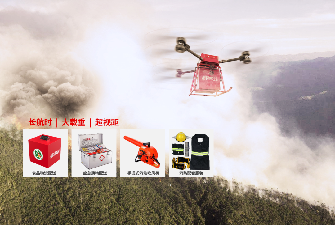 在道路堵塞、车辆无法接近火场时,消防无人机可以快速到达火灾现场,节省救援时间,提高救援效率,助力保障人民群众生命财产安全。
