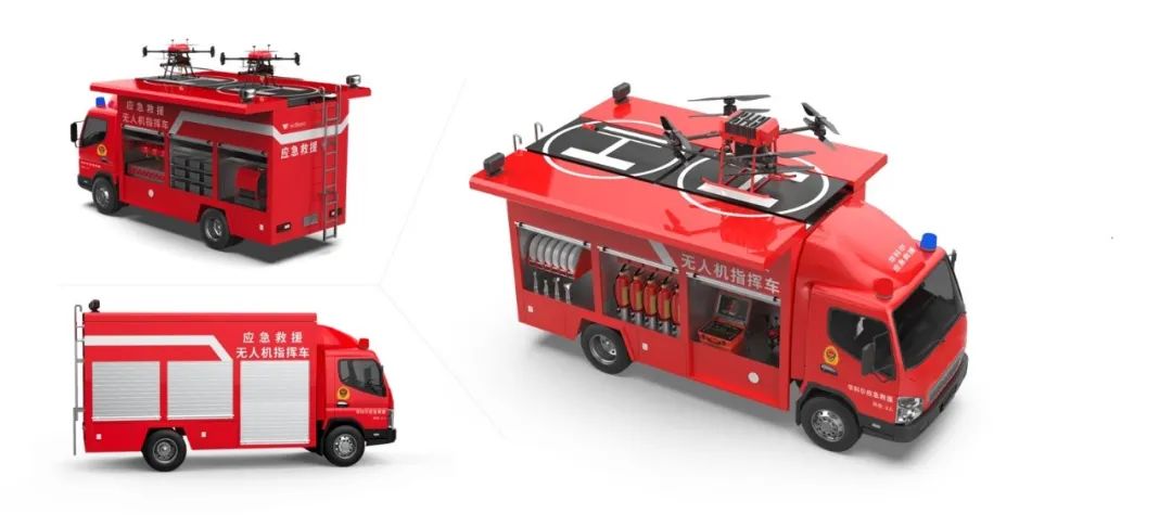 为提高救援效率,进一步弥补常规消防救援的中的短板,华科尔联合新余博迅汽车有限公司共同开发了应急救援消防无人机消防车应用系统。