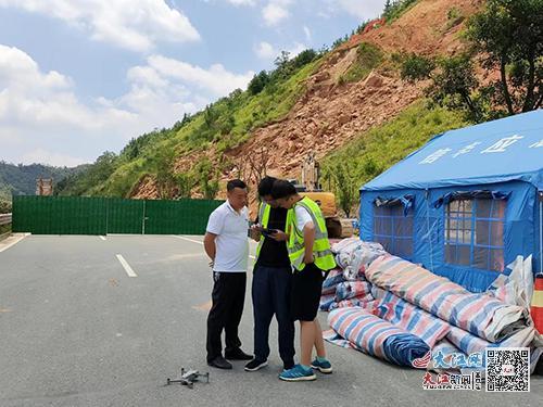 大江网/赣州头条客户端讯 通讯员王聪报道:6月25日,赣州公路发展中心信丰分中心工作人员应用无人机对绕城公路较复杂灾毁处协助清理抢修。