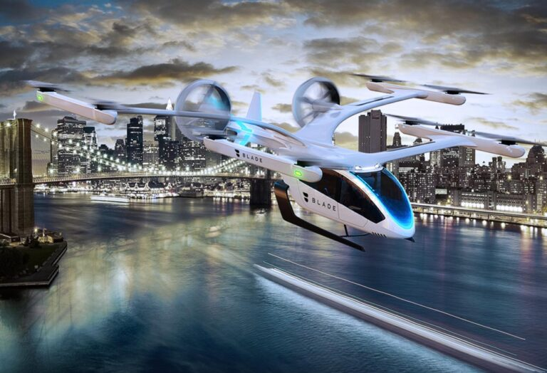 带有BLADE品牌的Beta Technologies eVTOL在纽约市上空飞行--BLADE已经订购了20架Beta的'Alia'eVTOL飞机