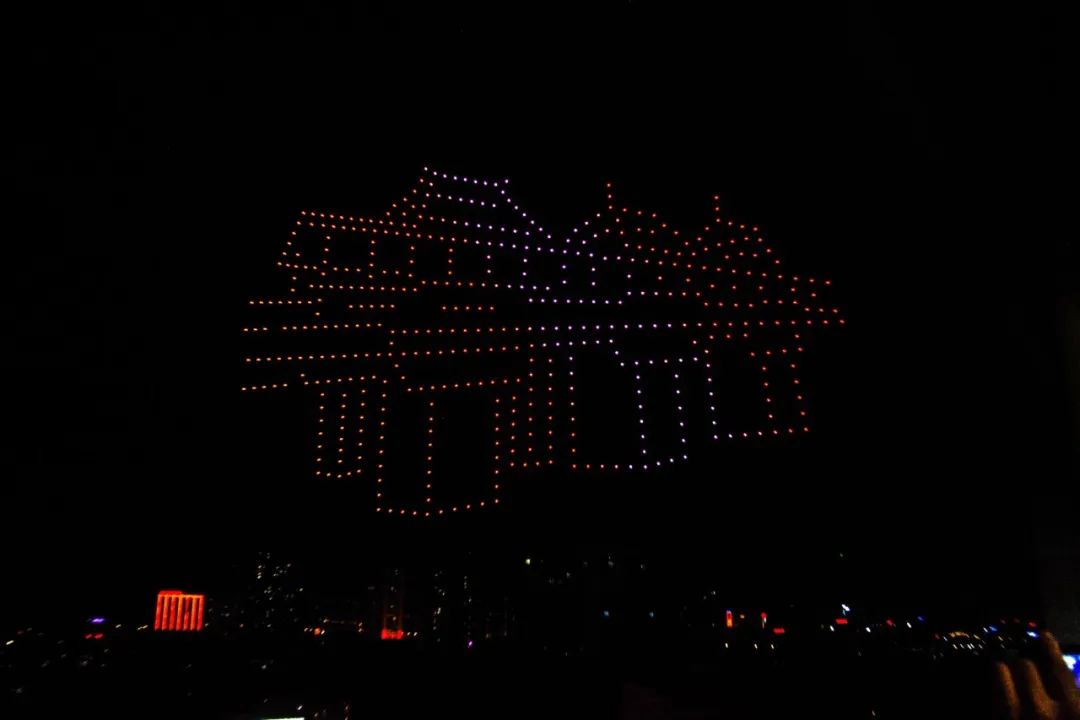 600台无人机缓缓升起十余种复杂的图案一一展现幻化出一幅幅美丽的图画向党和祖国深情告白向学校建校70周年献礼为观众带来一场精妙绝伦的视觉盛宴!无人机不断变...