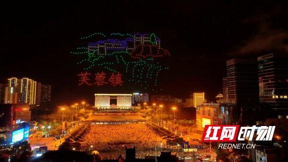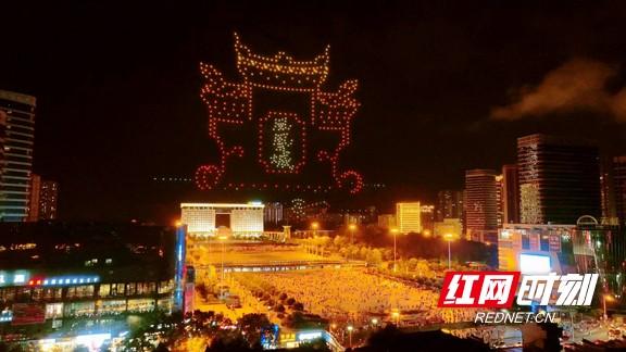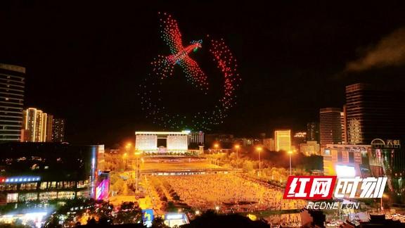 21:18,以“打造新时代红色地标 构筑武陵山旅游高地”为主题的无人机表演秀正式开始,1200架无人机凌空飞起,在夜空绘就绚烂图景,迎接湘西州首届旅游发展大会的召开。