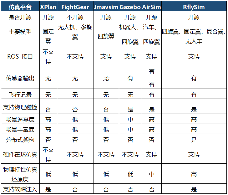 相对于其他平台,RflySim主要有以下特点:
