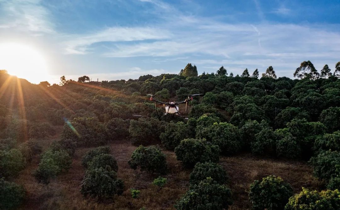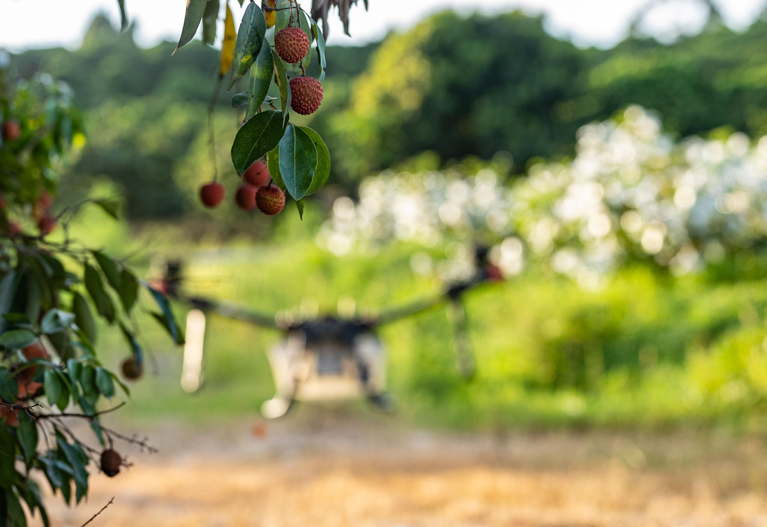 另一方面,极飞农业无人机成熟的智能离心雾化喷洒技术,有效降低了农药使用量;V50 双旋翼独有的大下压风场,不断吹动荔枝树叶,使药液均匀地附着在作物表面,达到更好的防护效果,让荔枝出品更加绿色、健康。