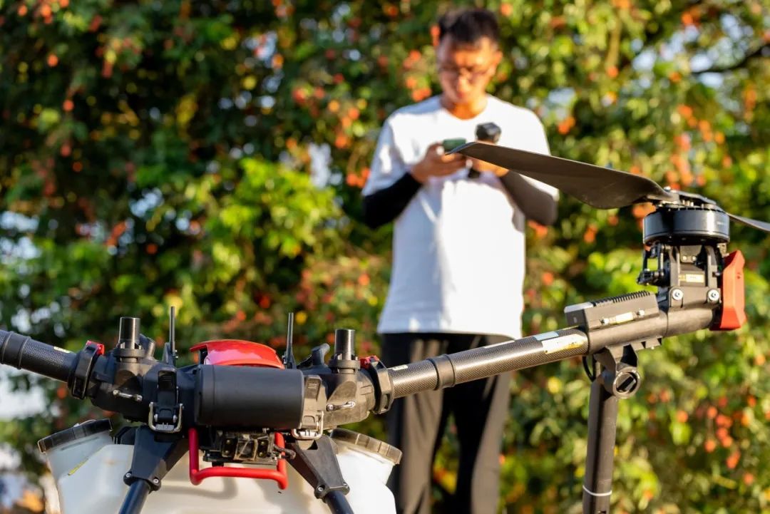 但另一方面,随着年纪越来越大,面对繁重的果园管理工作,60 岁的刘植良有时也感到力不从心。但在儿子接棒之前,他希望再把果园规模扩大到 1000 亩,还想在自己热爱的事业上拼一把。想要实现这一目标,必须引入更多的智慧农业技术与智能化装备,让果园生产走向机械化、数字化、智慧化。把农业无人机引进果园,就是刘植良进行转型升级的第一步。