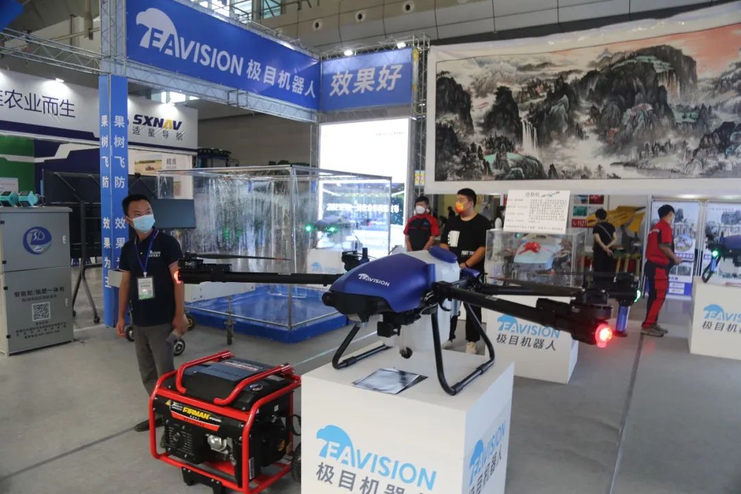 极目机器人亮相此次农机展,为新疆农业发展的机械化、现代化提供有力的高科技支持。展会上向前来参展的行业人员展示了多款高智能无人机,介绍了其在山地丘陵以及各地经济作物上的飞防实战经验。