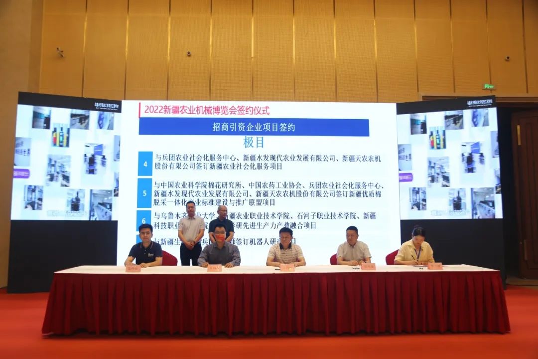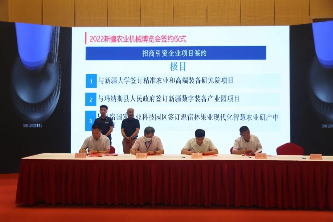 经过多年发展,新疆的农业机械化成绩斐然,正从农业生产主要环节走向“全程”,从主要农作物走向“全面”。为更好的助力新疆农业机械化高质量发展,新疆极目与多方达成了重要战略合作,其中包括:新疆数字装备产业园项目、温宿林果业现代化智慧农业研产中心项目、新疆农业社会化服务项目、“新疆优质棉脱采一体化产业标准建设与推广联盟”项目、机器人研产项目等重点签约项目。同时,新疆极目与多个高校签订产学研先进生产力产教融合项目,共同进行校企学术研究、共同培养该领域人才并拉动产业发展。这些项目的签约落地必将为新疆农机装备转型升级注入强大动能。