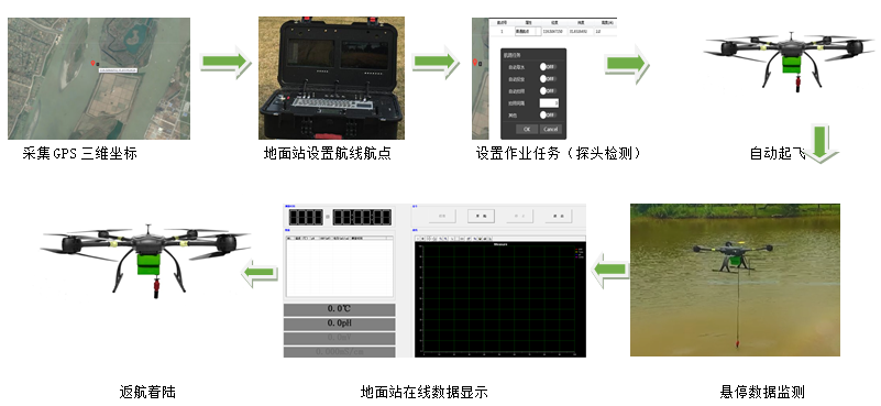 当事故发生后可立即规划航线,自主起飞迅速到达指定区域,对水质污染区进行实时全景监控,在短时间内可生成高清数据图像和叶绿素、水体浊度、蓝绿藻等多种检测数据,另外,污染事故发生后,可快速提供水体污染状况变化,数据实时传输至指挥中心,指挥室可以实时观看到无人机监测的情况,对环保部门快速响应和处置决策提供依据。