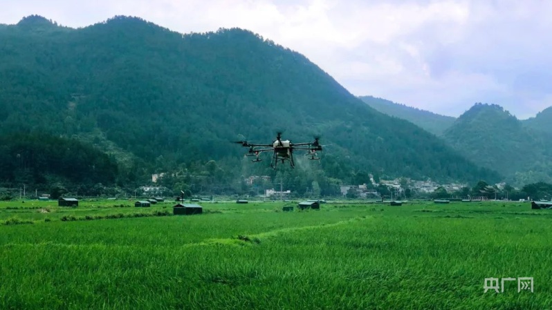 央广网贵州7月12日消息 近日,正值水稻生长的好时节,也是病虫害防治的关键时期。贵州省黔南布依族苗族自治州贵定县积极抢抓适宜期,使用植保无人机对贵定县区域水稻进行病虫灾害防治作业,通过科技手段助力田间管理,助力农业增效、农户增收。