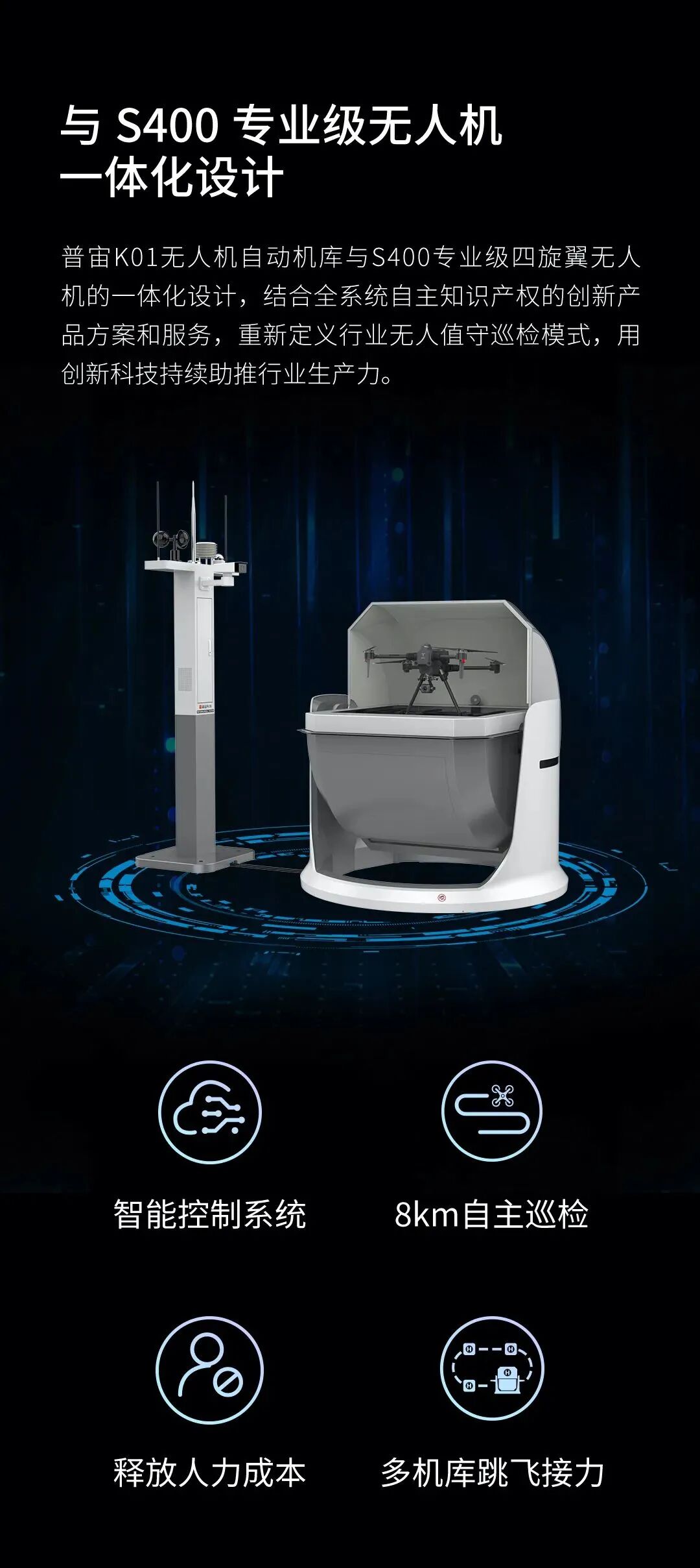 作为专业级无人机领航者,普宙科技具备无人机全产业链研发能力,拥有丰富的无人机产品线,在无人机、无人机自动机库、智能载荷、软件平台和数据运营等领域不断革新产品和解决方案,掌握无人机全系统自主知识产权,现已为全球 100多个城市、多个行业领域数千位客户提供了“1+N”行业融合解决方案(即1个通用型专业级无人机平台+N个行业的深度定制化解决方案),通过自动化、无人化、定制化产品和解决方案,为各行业高效赋能。