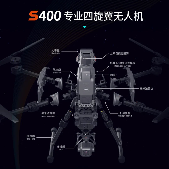 CW-25H(DJ25)具有零排放、无噪音、低振动、低维护成本,最大航时可达330分钟,最大有效载荷4千克,最大航程500千米,飞行器性能与能源使用效率实现全面提升,适用长距离巡检和极大面积测绘场景。
