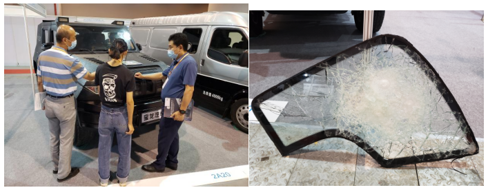 宝龙汽车的防弹车,采用安全防护解决方案,如防弹玻璃、防扎轮胎技术、高性能轻质防护材料技术、防爆胎安全装备技术等高科技,展会现场亦吸引众多关注。