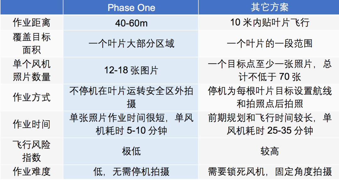 相对于停机检测,使用Phase One相机可以提供完美的不停机检测方案,具有划时代的意义。在不影响发电量的情况下,最大地减少对风电厂正常工作的干扰,无需等待停机,做到真正的随到随检, 高效实时发现风机缺陷。