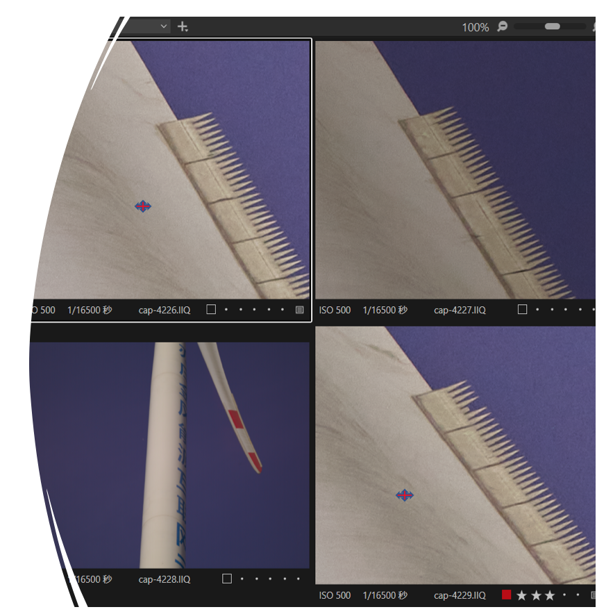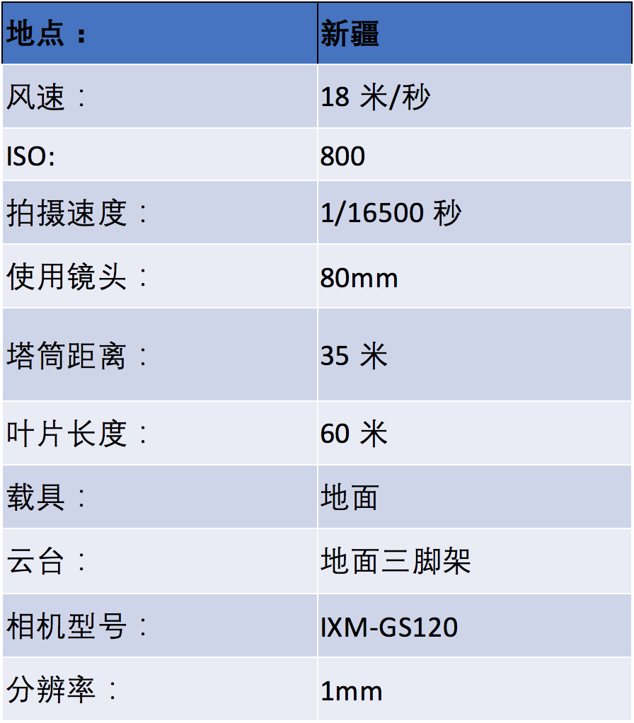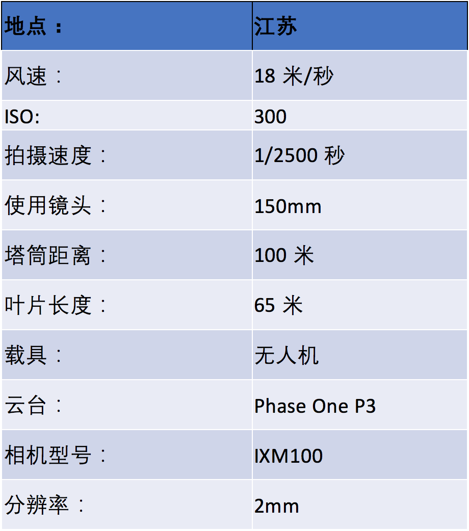 风机叶片转动时,叶尖瞬时速度可高达200-300公里/小时。如果快门速度达不到一定要求,拍摄出的画面就会出现变形和拖影,直接影响风机叶片的巡检效果。因此,高速拍摄的快门速度是风机不停机拍摄的重要因素之一。Phase One不仅有1亿像素且高达1/2500秒的机械快门相机iXM-100,今年更是研发并推出了1/16500秒的全局快门技术,且相机像素高达1.2亿(iXM-GS120),完全满足高速转动时清晰拍摄风机叶片的条件,每秒可拍3-5帧无畸变画面,真实还原叶片高速转动时的瞬时状态。