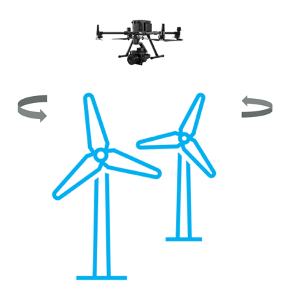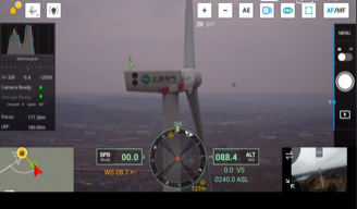 自动拍摄是使用目前最先进的人工智能深度学习识别算法,辅助雷达测距技术、智能航线规划技术,对风机叶片进行拍摄的方法。在无需人员控制的情况下,无人机挂载Phase One P3云台和IXM100相机在风机旋转直径虚拟球外30-50米自动拍摄。首先、无人机升空后自动寻找风机偏航角,无人机进入拍摄航线,对叶片进行拍摄,拍摄后旋转到风机侧面拍摄前缘与后缘,依次转到风机正后方拍摄叶片背面影像。