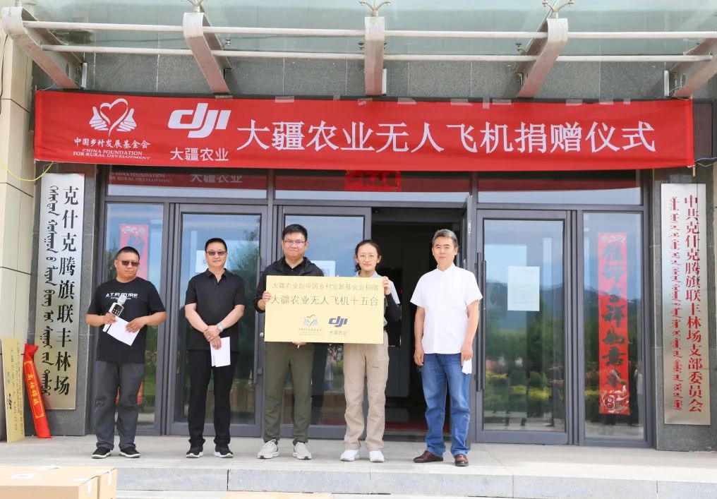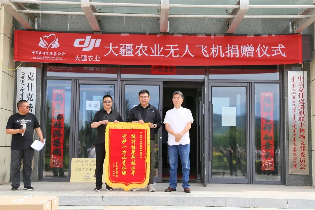 首批交机仪式在内蒙克什克腾旗的联丰林场举行,内蒙古浑善达克规模化林场场长谢明玉,克什克腾旗林业和草原局副局长王明达,克什克腾旗森林草原技术推广中心主任董学存,中国乡村发展基金会代表樊又齐,大疆农业公共关系经理聂宏远出席了本次捐赠仪式。