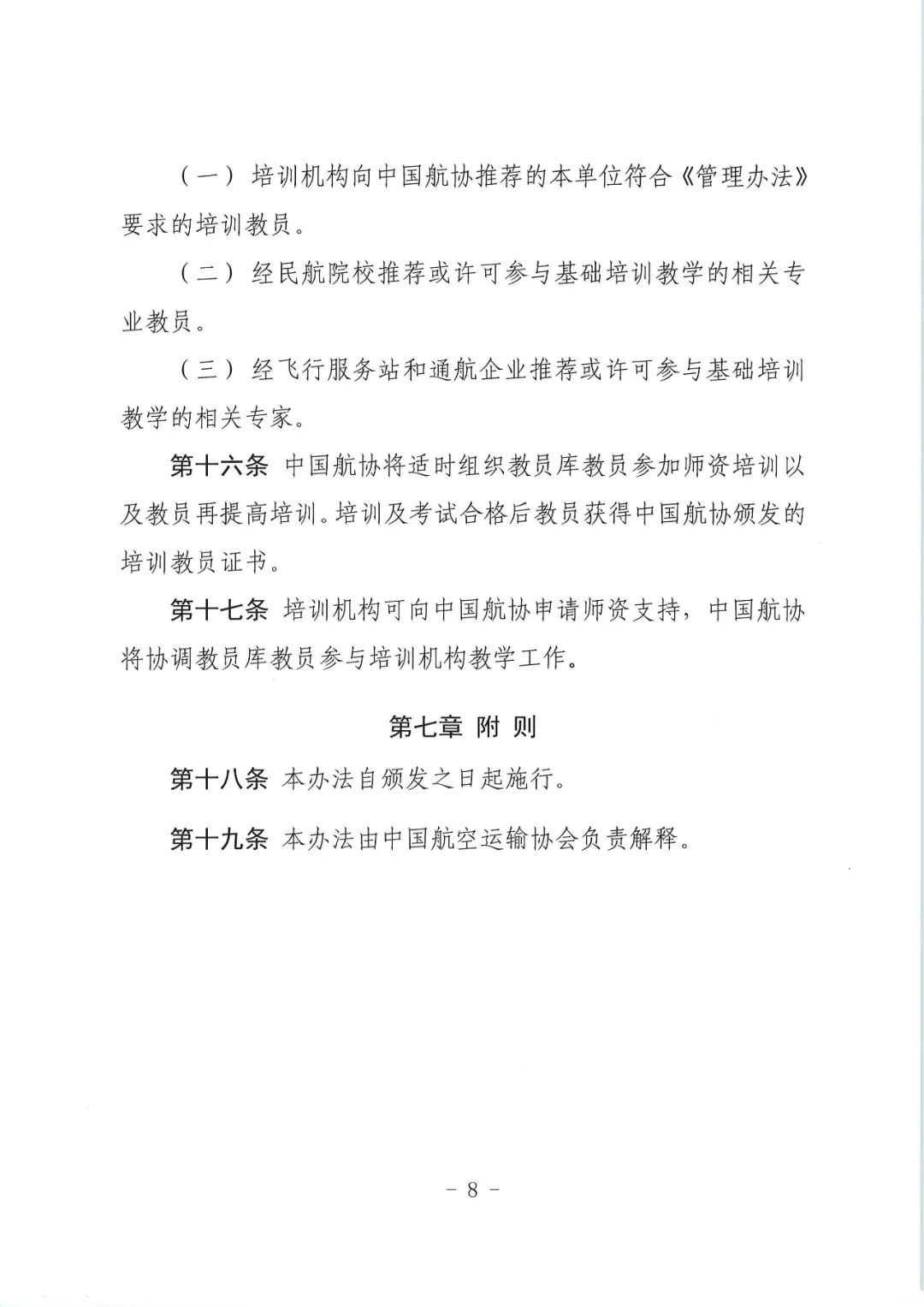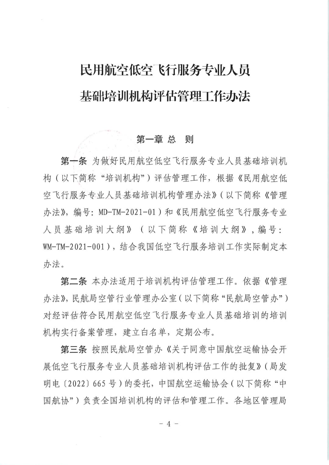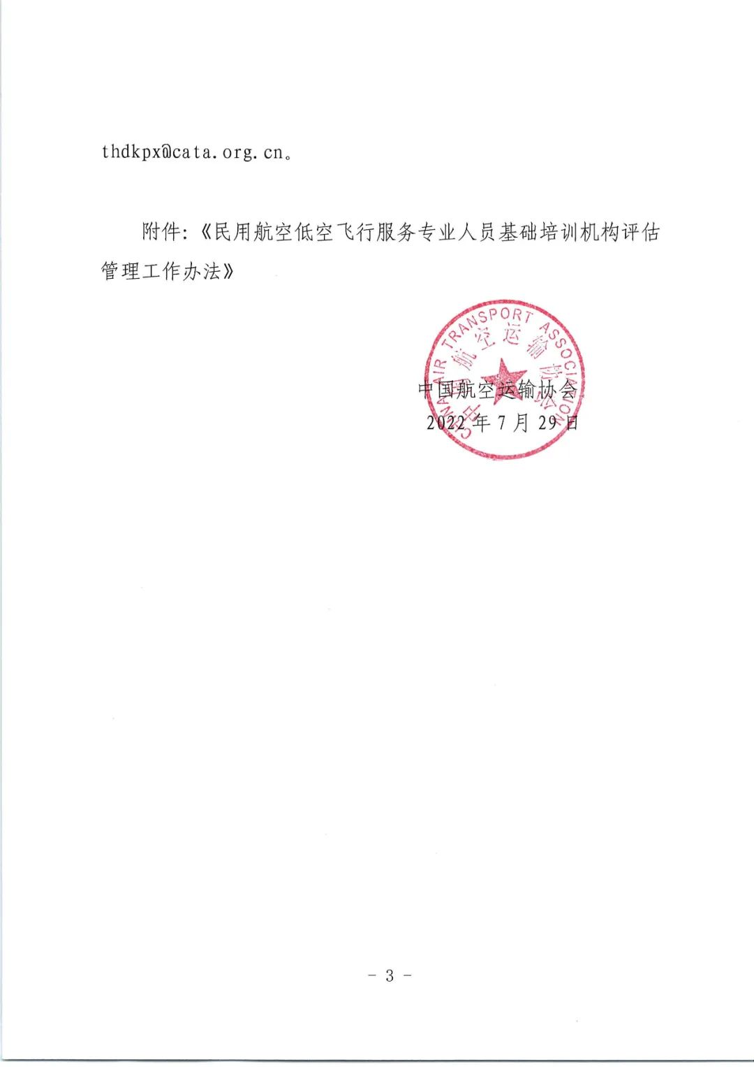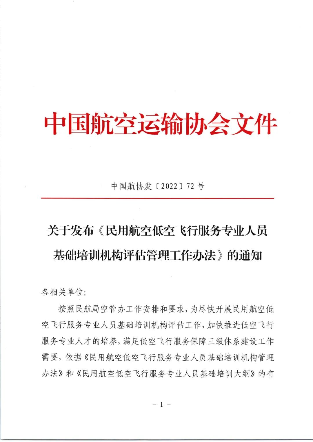 中国航空运输协会:关于发布《民用航空低空飞行服务专业人员基础培训机构评估管理工作办法》的通知