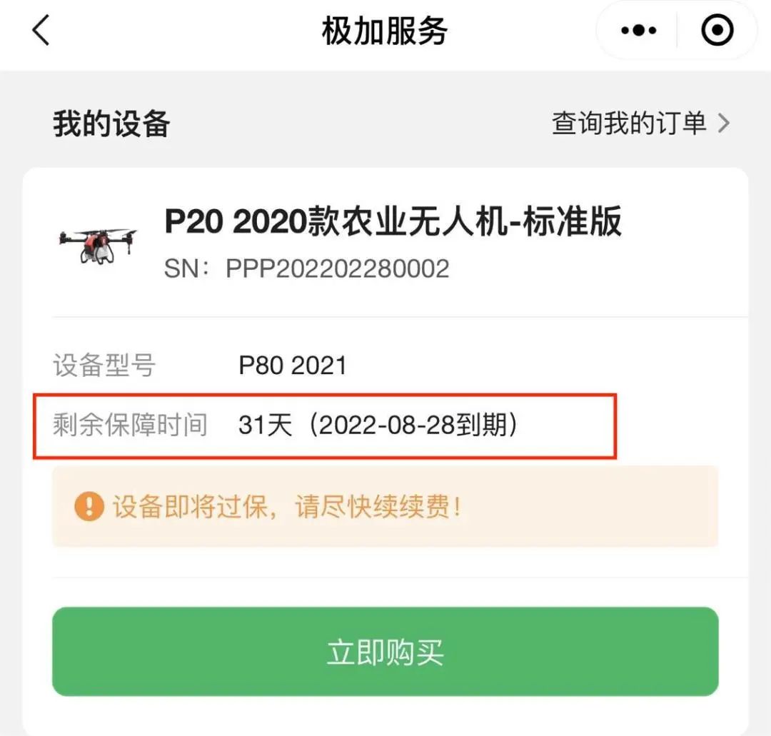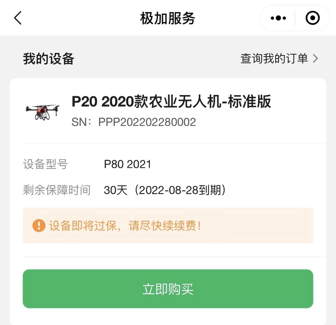 极飞服务小程序 -【极加服务】- 【我的设备】-【剩余保障时间】