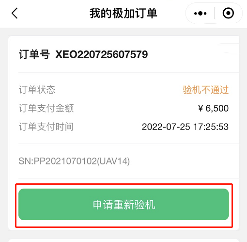 在【我的极加订单】-【申请重新验机】,重新提交申请即可。