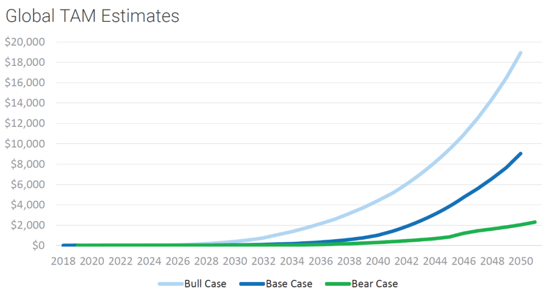 美国航空航天工业协会(AIA)与德勤在2021 年1 月进行的一项联合研究显示,到2035年,空中交通市场价值可达1150 亿美元(占美国GDP 的0.5%)。摩根士丹利的另一项研究预测,到2040年,城市空中交通市场可能突破1 万亿美元大关。