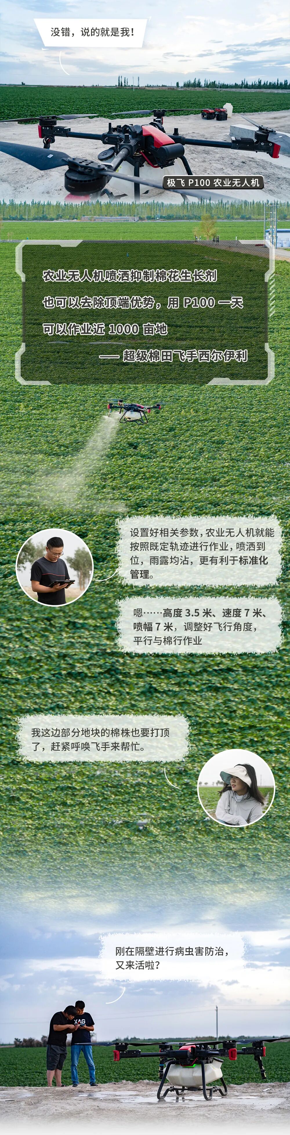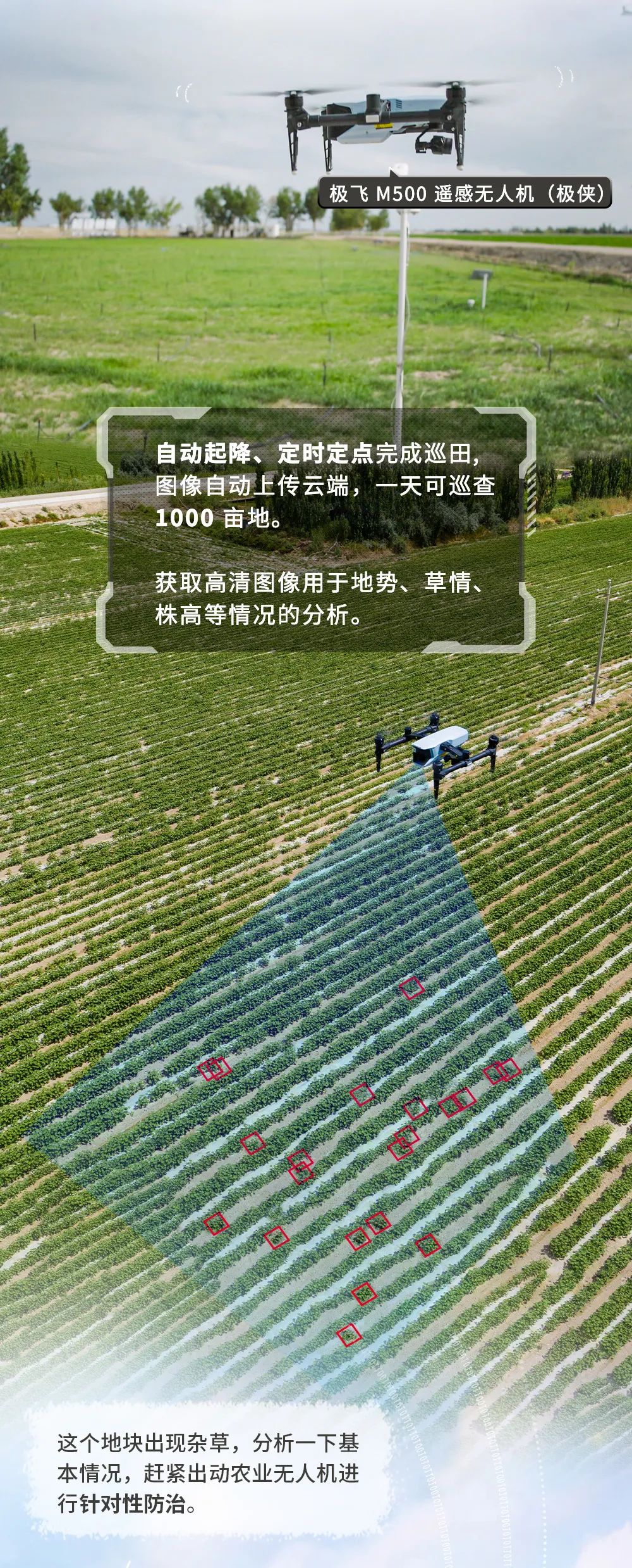 极飞的愿景是,构建一个满足人类未来 100 年发展需求的农业生态系统,让全世界的人们都能获得充足、丰富和安全的食物。成立 14 年来,极飞自主研发了农业无人机、农业无人车、农机自驾仪、农业物联网和智慧农业管理系统等产品。通过构建完善的渠道体系,为农户提供智能、高效、经济的生产工具和数据服务;帮助农场解决劳动力成本高、生产管理粗放等问题。
