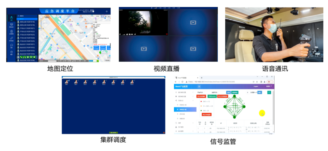 灾害发生时,救援人员携带自组网设备,快速在现场搭建独立的应急通信系统,实现现场语音通信、视频回传、定位。现场指挥中心,配备现场调度台和车载台,提供可视化的指挥调度。无人机,携带Mesh模块,作为中继节点,提高自组网网络覆盖距离。