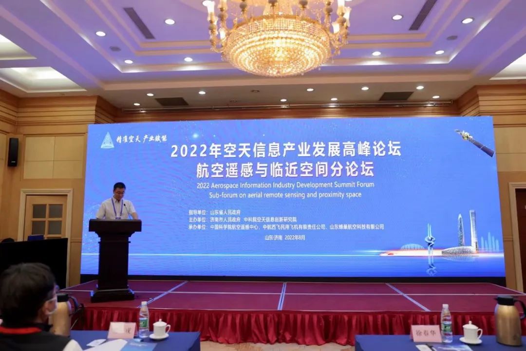 蜂巢航宇董事长及无人机市场部负责同志应邀到山东大厦参加2022年空天信息产业发展高峰论坛。本次高峰论坛由济南市人民政府、中国科学院空天信息创新研究院共同主办,以“空天赋能 智创未来”为主题,旨在展示空天信息领域最新研究成果,搭建产业交流合作平台,共同推动空天信息产业高质量发展。