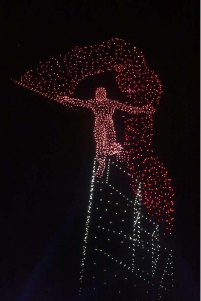 当日20时许,随着激荡的旋律,2022架无人机在多彩的灯光映衬下,有序地腾空而起,好似漫天飞舞的流星,让人仿佛置身于科幻电影的拍摄现场。在人们翘首以盼中,象征着长春百折不挠、生机勃发、快速崛起的第一组无人机灯光表演画面“奋斗者”主题雕塑徐徐展现,让现场瞬间沸腾,观众自然而然地向奋斗者致敬。