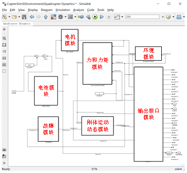 包含了机身、运行环境、力与力矩等内部子系统模块,是对机体在环境的运动、能耗和故障特性的整体描述;