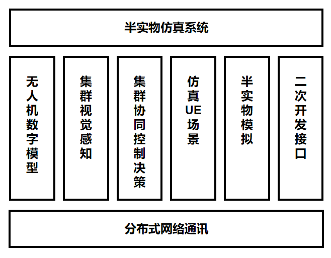 针对无人机集群半物理仿真实现,飞思实验室具备成套解决方案,其系统框架如下图: