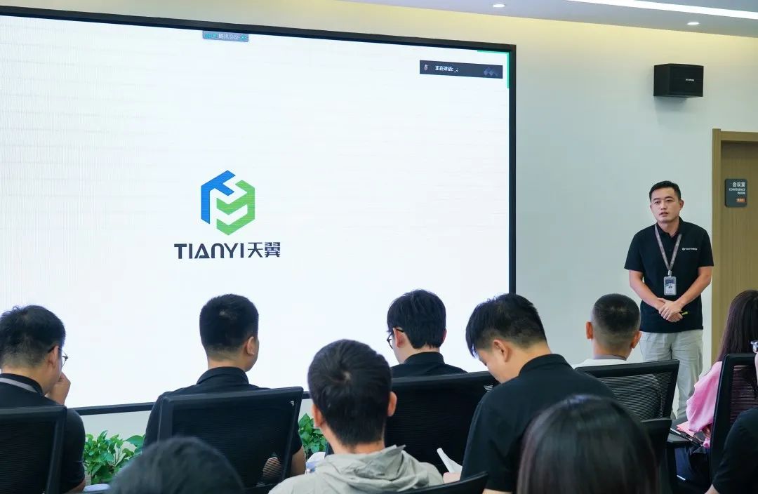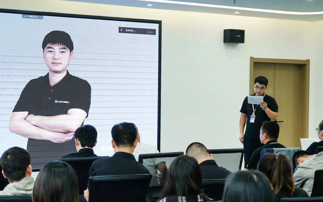天翼的项目交付部黎经理汇报了上半年的项目招投标工作,在接下来的日子中,项目交付部的同事也会拿出百分百的精力投入在工作中,同时也会加强部门间协同协作。